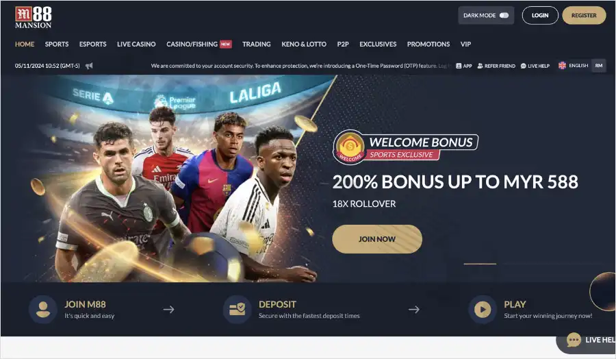 M88 supports various payment methods, including credit and debit cards, e-wallets, bank transfers, and cryptocurrencies. The platform offers a dedicated section for financial transactions, making it easy for users to deposit and withdraw funds. M88 is particularly noted for its swift processing times for deposits, which are usually immediate. This is particularly beneficial for users who want to place bets without waiting for extended processing times.